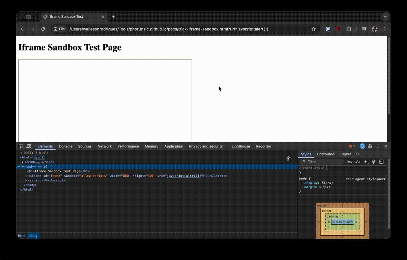 1- Visit: https://wallesonmoura.com.br/pocs/trick-iframe-sandbox.html